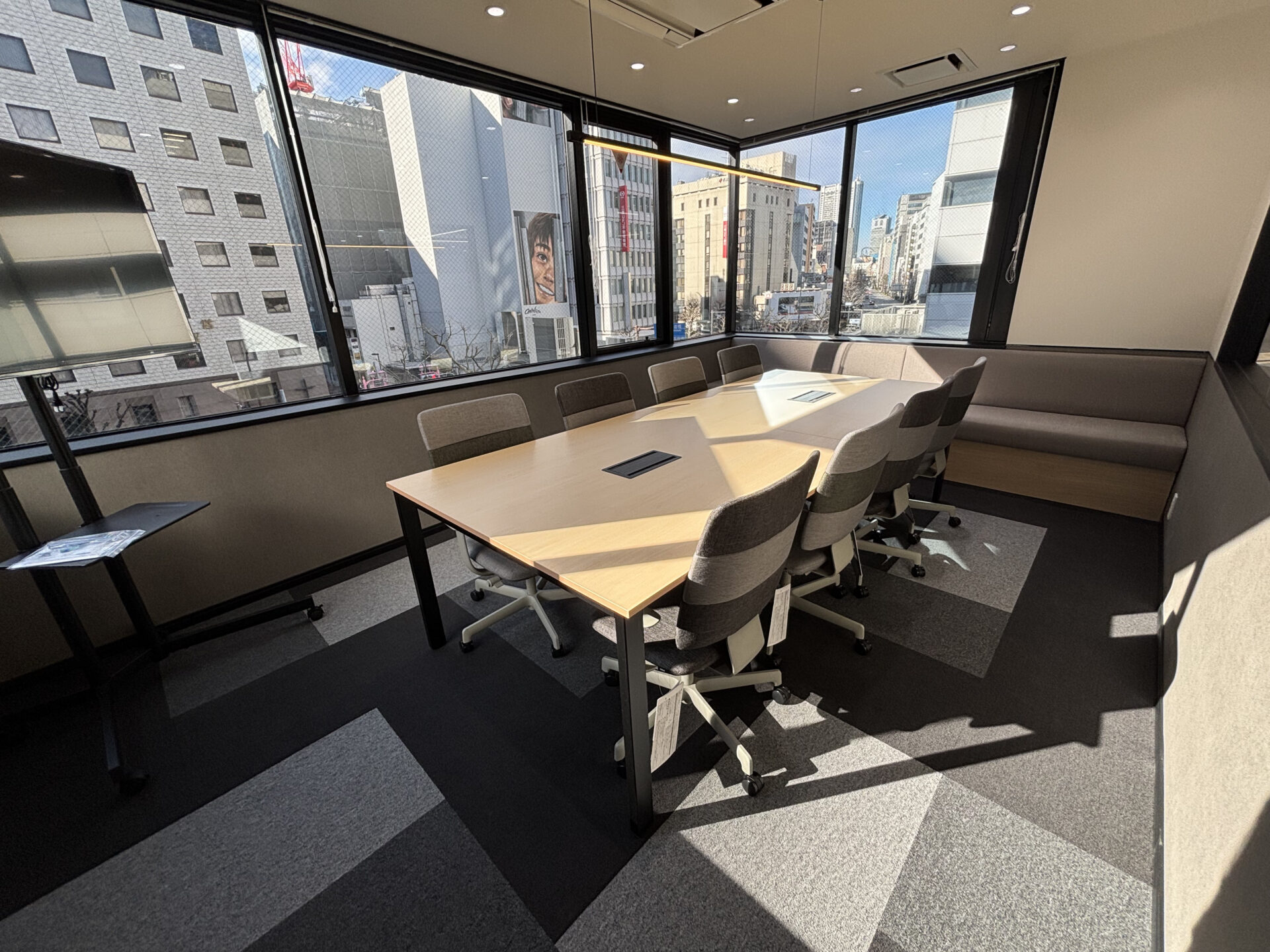 平河町エリア新宿通り間近に位置する、2022年1月エントランスリニューアル、3月貸室内リニューアル完了の物件になります。 外観は白を基調とし落ち着きのある造りになっております。エントランスは白をベースとした木目調でホテルのロビーの様な高級感ある仕様になっております。貸室内はガラス張りの会議室、6人用・8人用が2つございます。会議室にはオンライン会議にもご利用頂けるテレビが既に設置済みになります。テレフォンブースも2つあり急なオンライン会議にもご対応頂けるかと存じます。