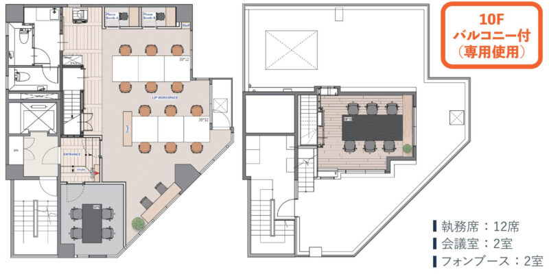 此方の物件は3駅6路線が利用可能、乗り換えせずにターミナル駅へのアクセスが可能な通勤に便利な立地にあります。会議室が2つ、フォンブースが2室と、設備も充実しています。貸室内は落ち着いた内装で統一されているため、集中して働くことが出来そうです。こちらの区画限定のバルコニーが付いているため、休憩時間には景観を楽しむことも可能です。