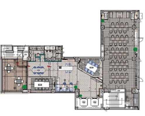 こちらの物件はとにかくオシャレな仕様となっており、オフィス空間とは感じないソファーや机などの家具が備わっております。また、五階にはバルコニーもありまして天気の良い日はここでご飯を食べてみても気分がリラックスすると思います。外観は、スタイリッシュなタイル張りとなっており設備面に関しましては、エレベーターが2基の機械警備となっております。近くにはコンビニや飲食店がありますのでお昼時には困ることはありません。