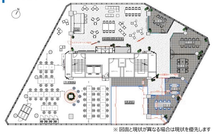 こちらの物件は4駅3路線が利用可能な居抜きオフィスです。ターミナル駅へのアクセスも快適な立地にある物件です。通り沿いに面しているため、視認性も高いです。ガラス張りの外観は存在感があります。貸室内はデスクのある執務エリアと、汎用性の高いフリーワークエリアに分かれています。また、会議室が5室も付いているため、来客の多いお客様にも安心してご利用いただけそうです。近隣にコンビニを始めドラックストアや銀行、郵便局があり、周辺環境は良好です。