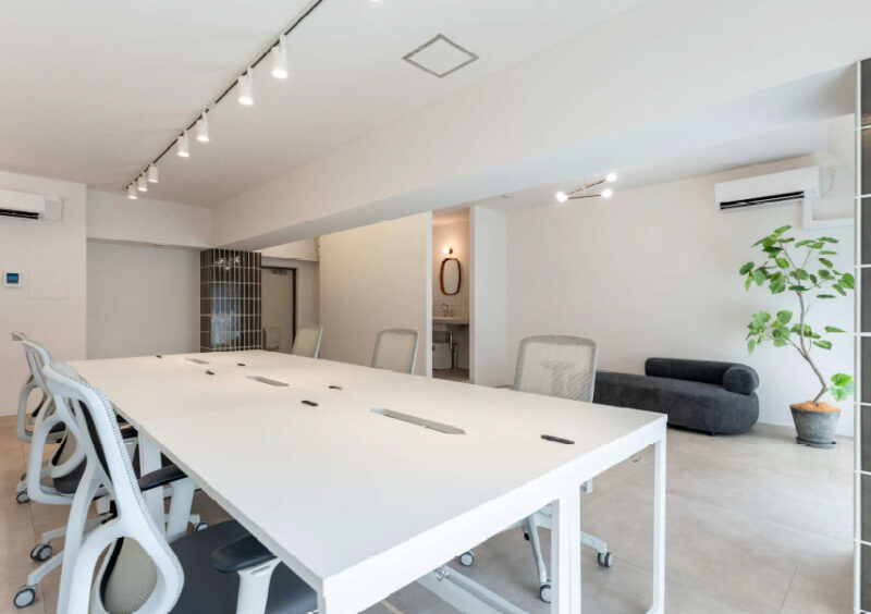 こちらのセットアップオフィス は、複数路線利用可能な 最寄り駅から徒歩3分圏内でアクセス良好な立地となっております。日差しが差し込む天窓と窓面が大きいバルコニーがあり、解放感のある空間になっております。開放的な空間だからこそ集中力が高まるよう、デスクが壁に向いていたり、家具など配置が工夫されており、人の視線が気にならないレイアウトになっています。中央にはシンボルツリーがあり、企業とともに成長していくマスコット的存在です。