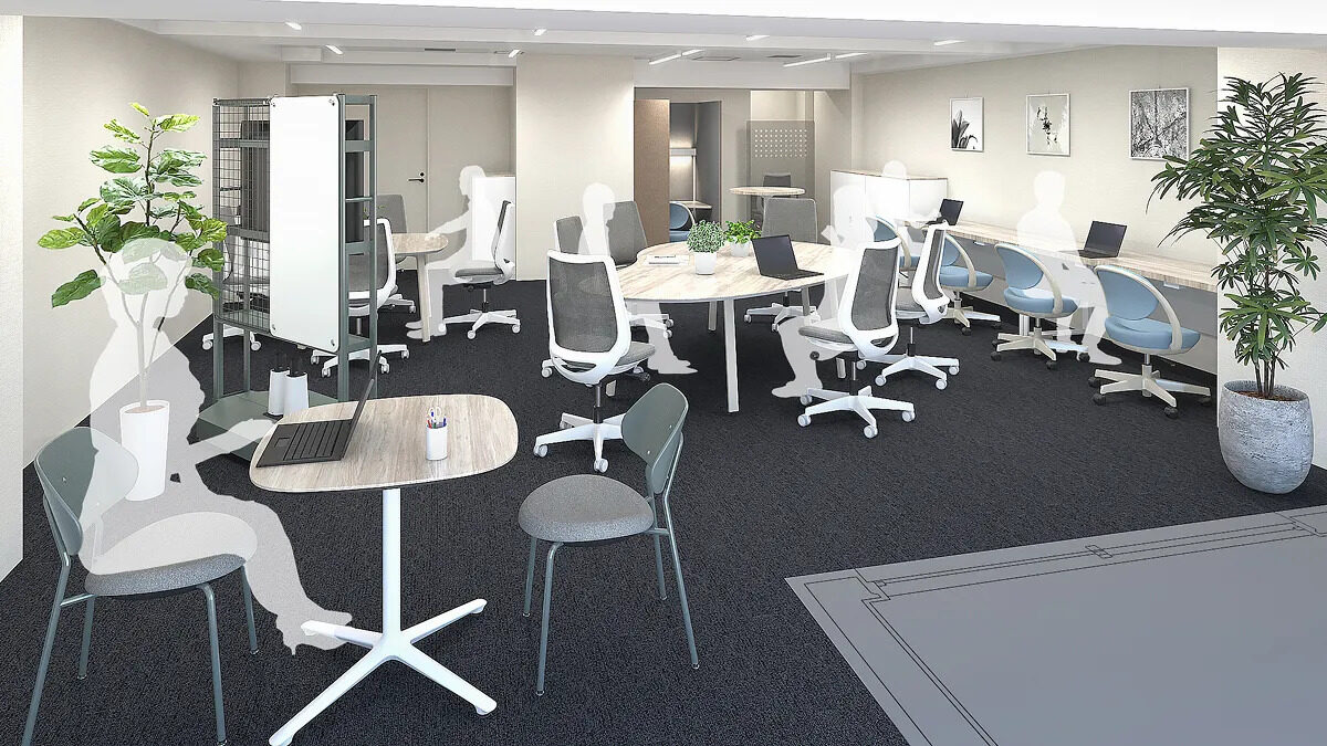個室は約29〜60㎡を中心に全15区画が計画されており、少人数チームの拠点づくりから、事業フェーズに合わせた増員までを見据えた設計が特徴です。